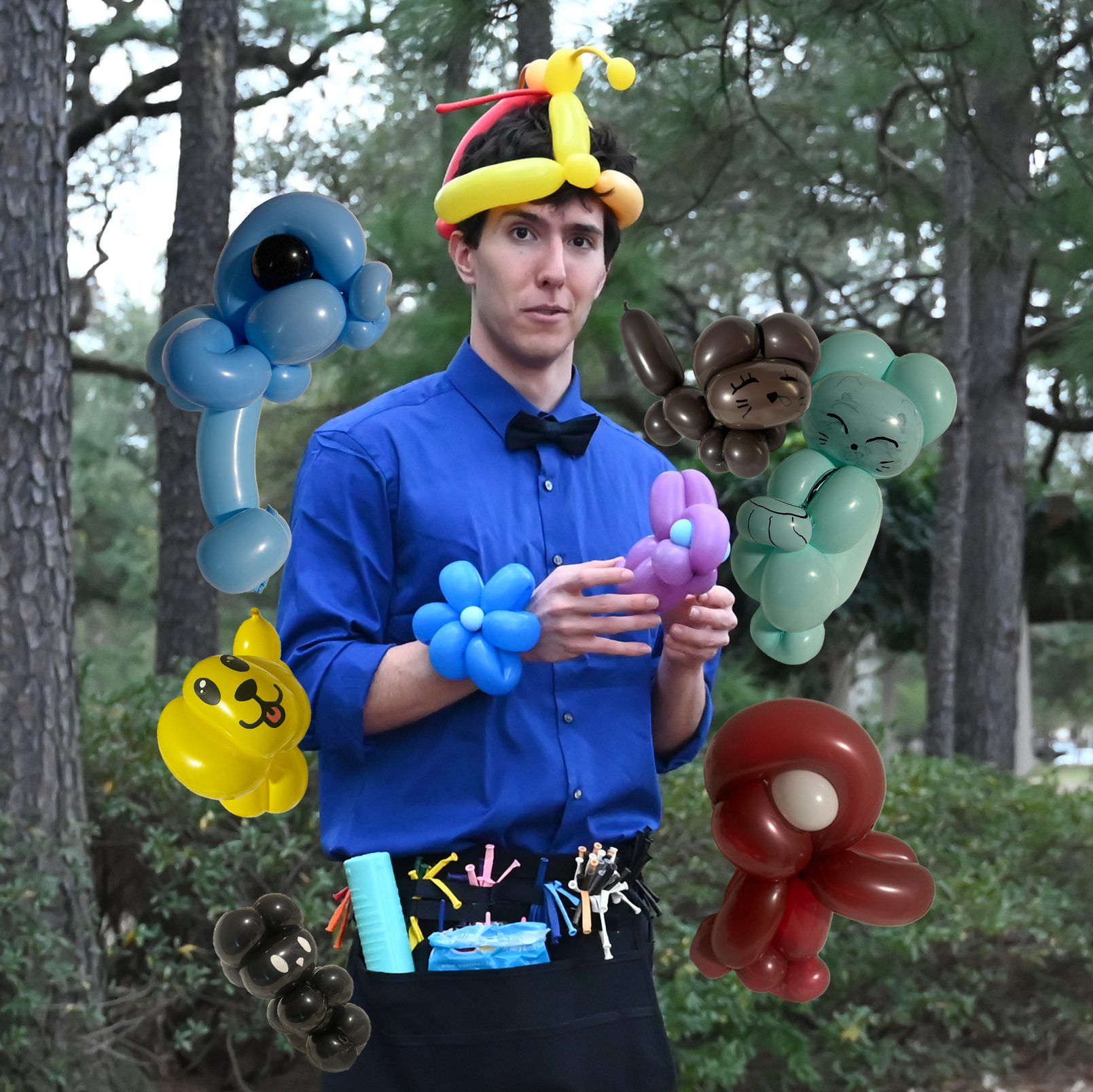 I started twisting balloons in middle school, stealing balloons from my mother’s party supplies from the party business she ran. I quickly became obsessed with creating all kinds of balloon animals. I love the mental puzzles involved in turning a single balloon into a three-dimensional object. More than anything, though, I enjoy the connection that comes from making personalized crafts for people.